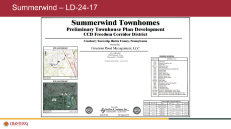 Consider a Preliminary Land Development application for a one (1) phase, 66 townhouse unit residential development to be located along Freedom Road on approximately 7.7 acres in the CCD Corridor-Freedom Road Overlay zoning district.